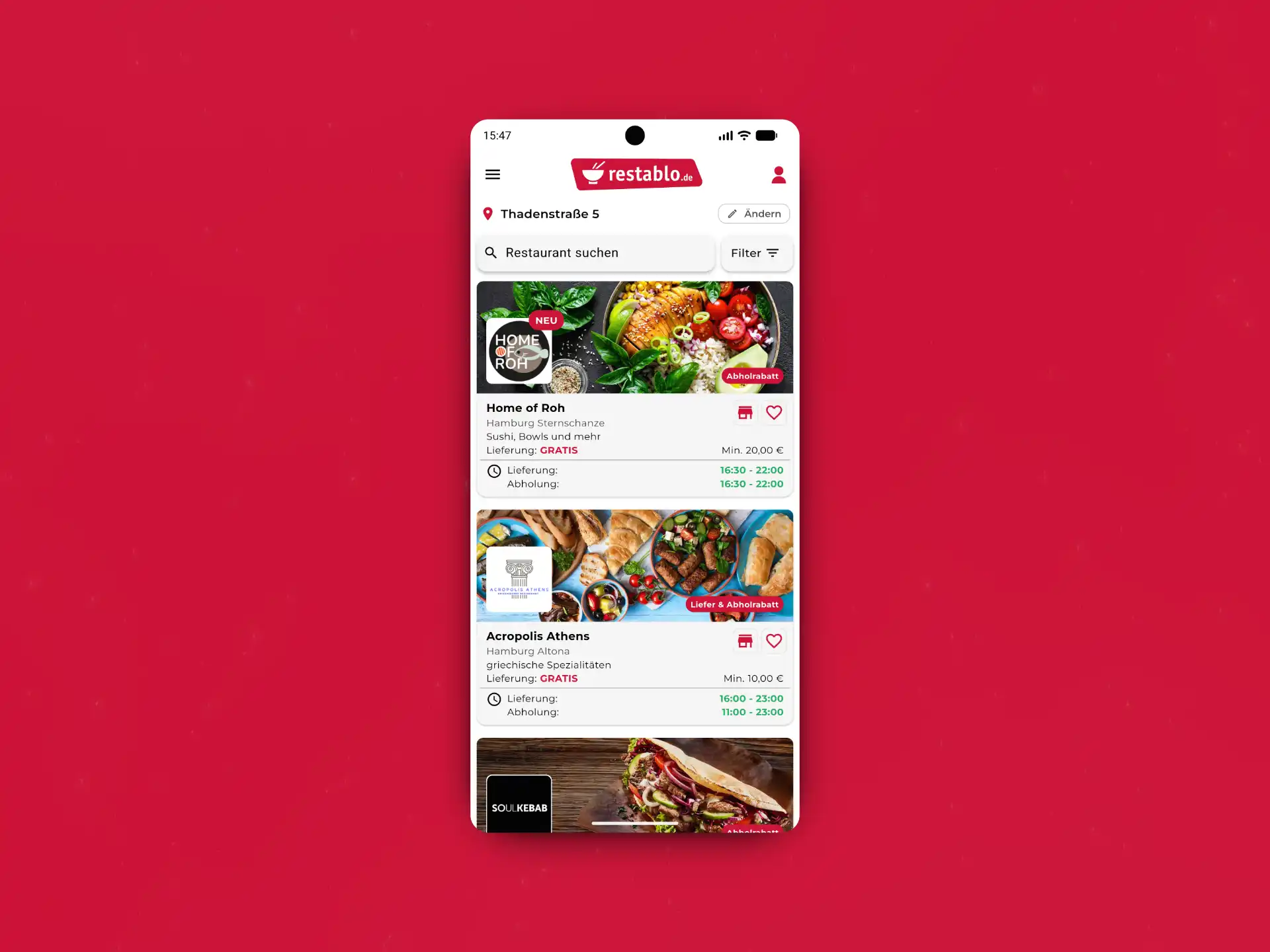 Mit unserer App findest du Dein Lieblingsessen in Sekunden.